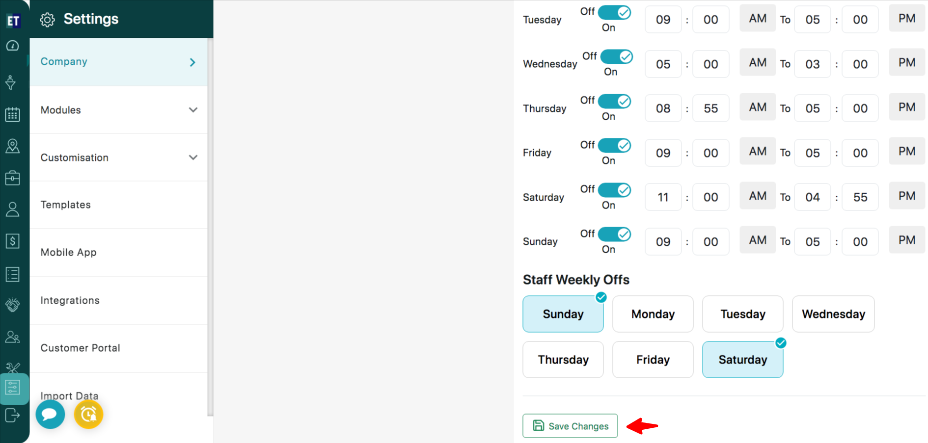 Save your changes to apply the schedule settings across the platform by clicking on Save Changes button.