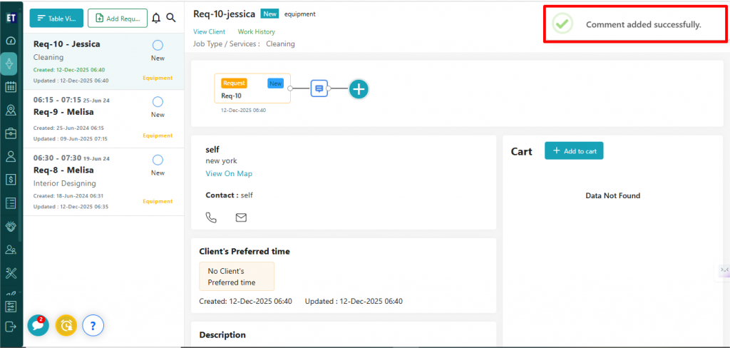 Go to the Request Icon from the main menu, select the Request in which you want to add comments.