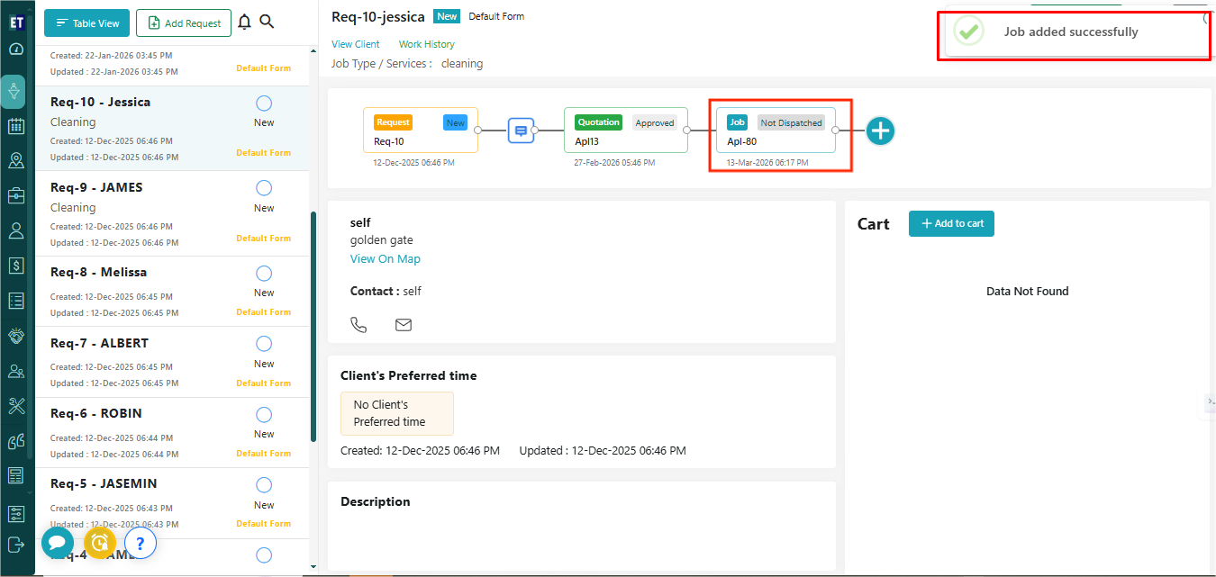 Clicking on the Save button will show you the success alert on the right corner of the screen and the newly added Job will be displayed in the timeline view.