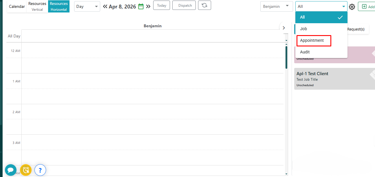 Then you will find a dropdown at the top right side of the screen, select Appointment.