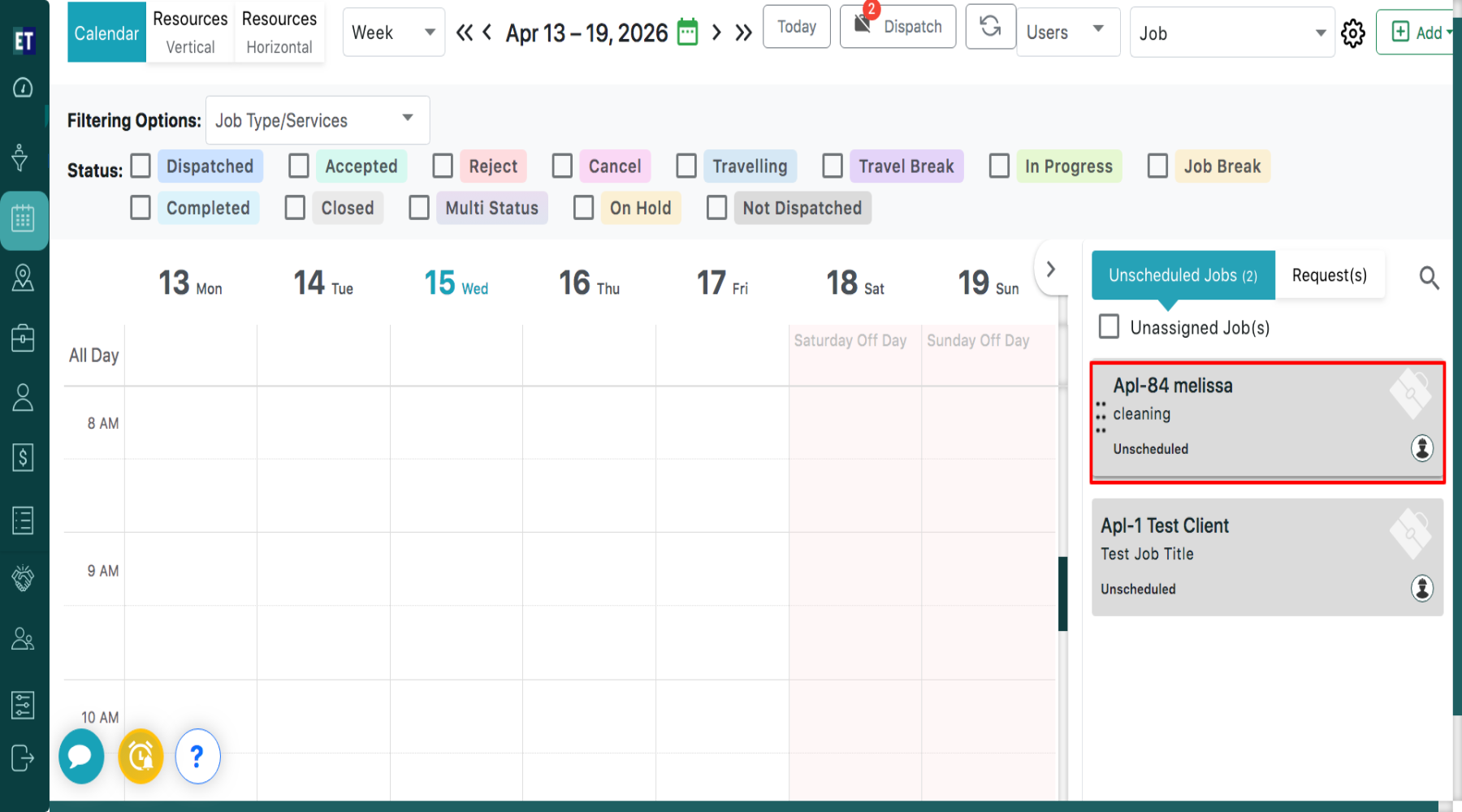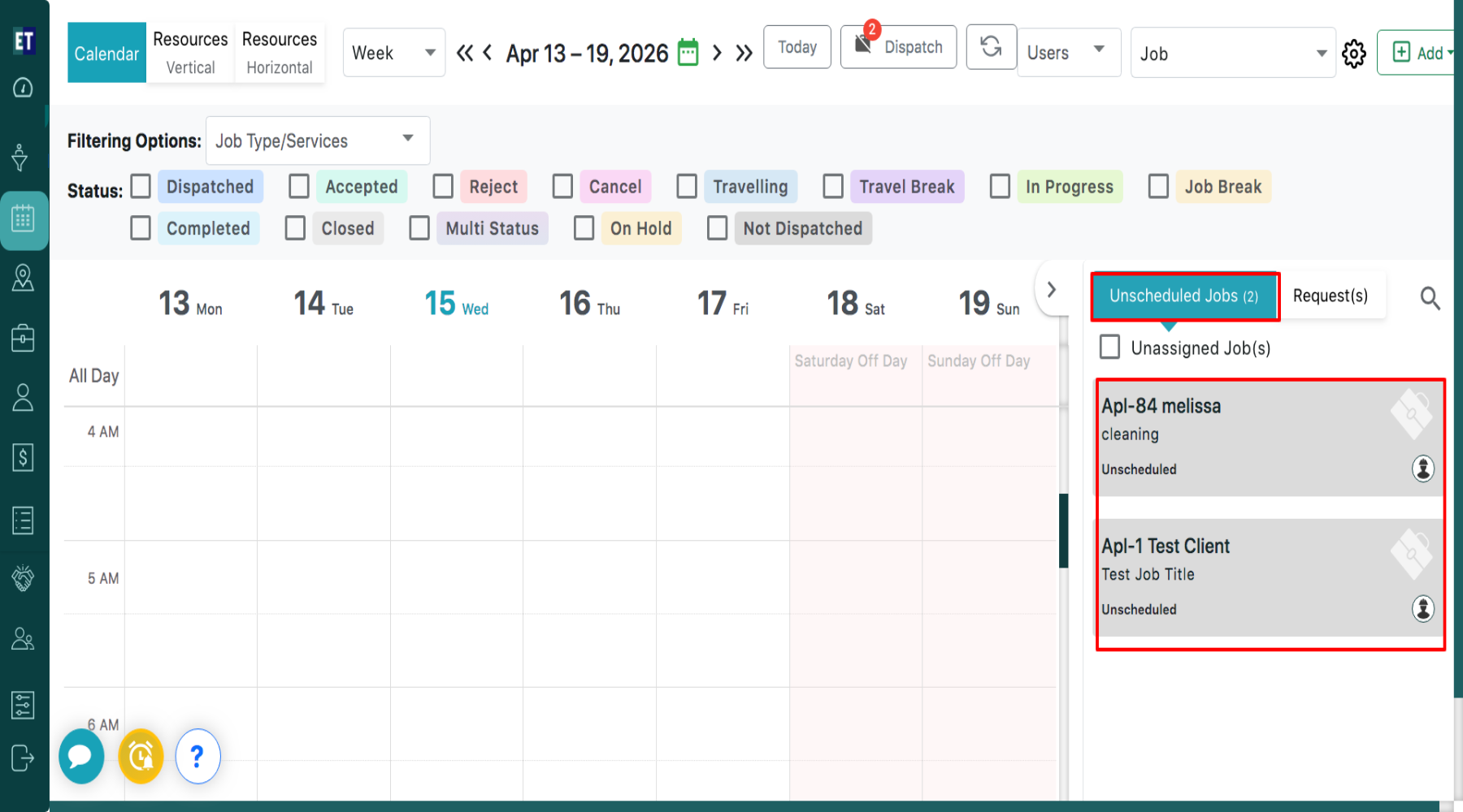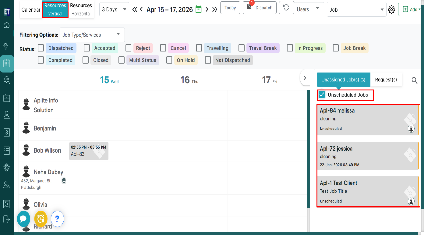 On the right-hand side of the screen, you will see a section titled “Unscheduled Jobs”, which displays all jobs that are yet to be scheduled.